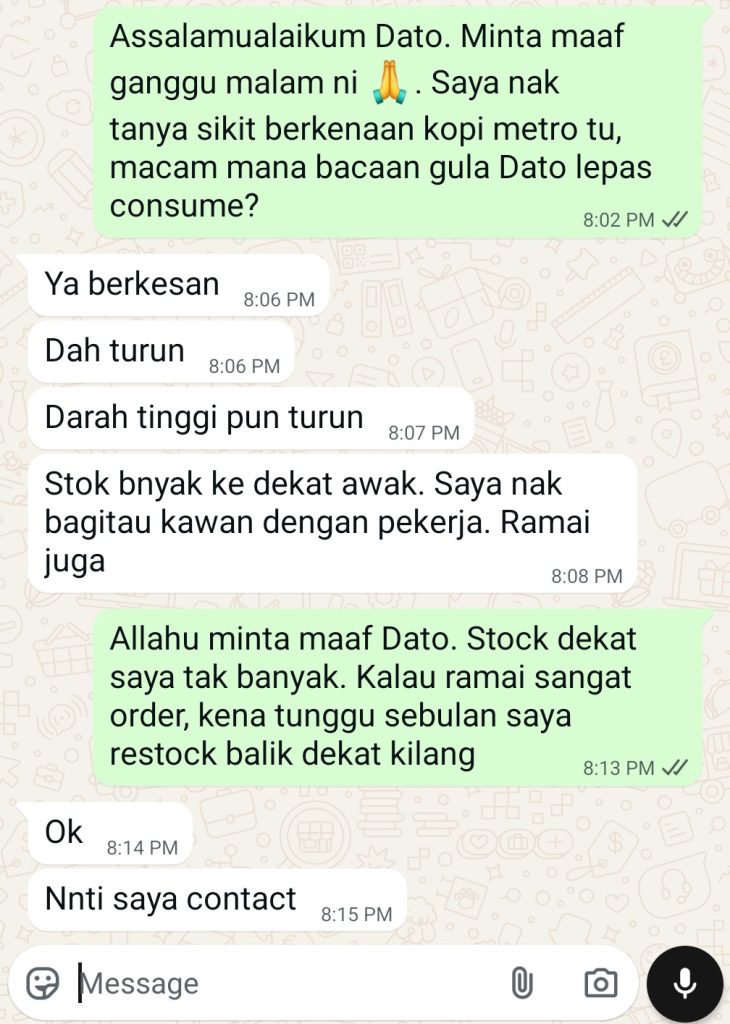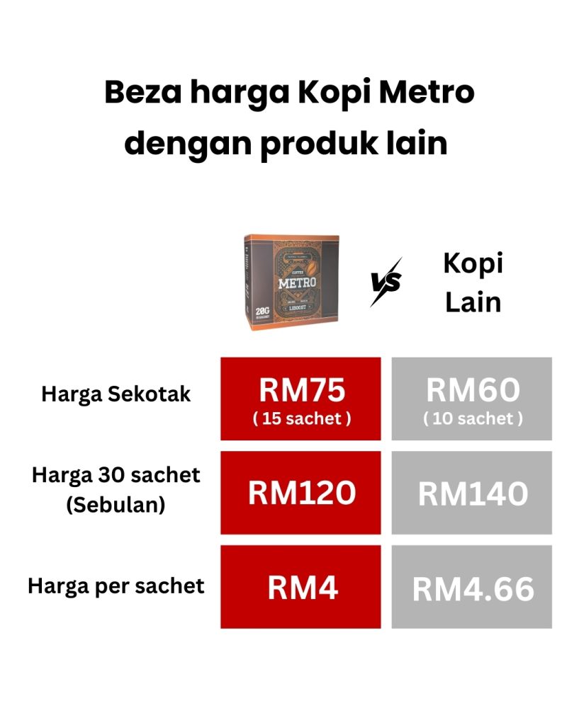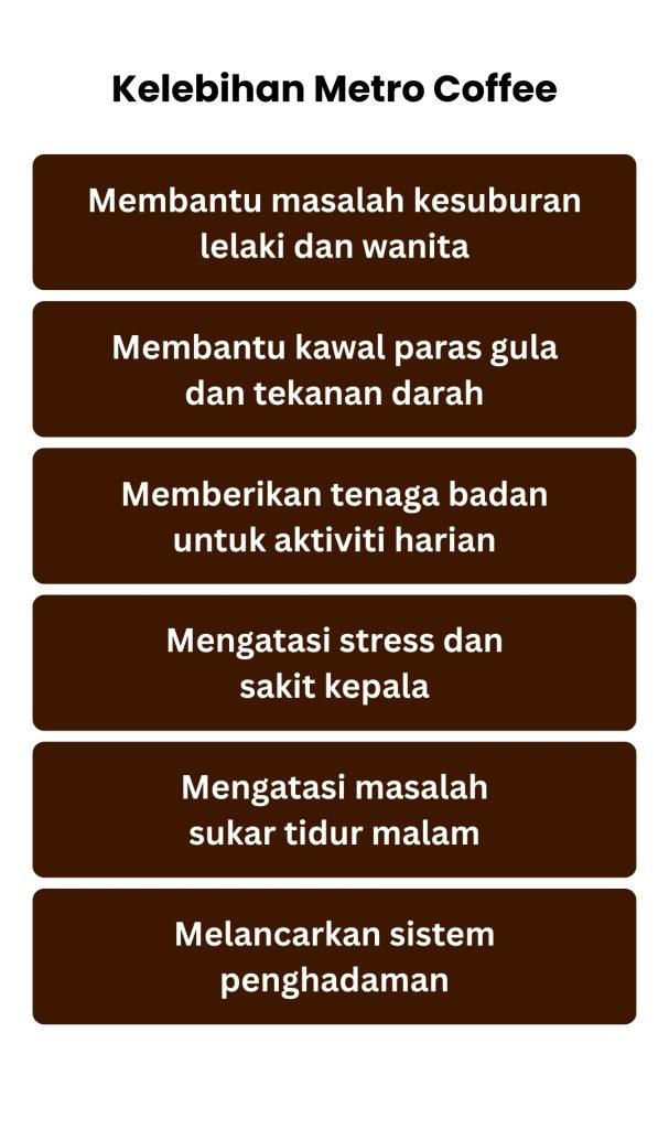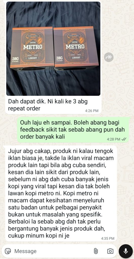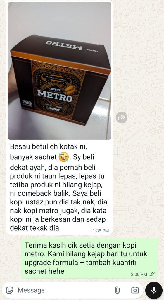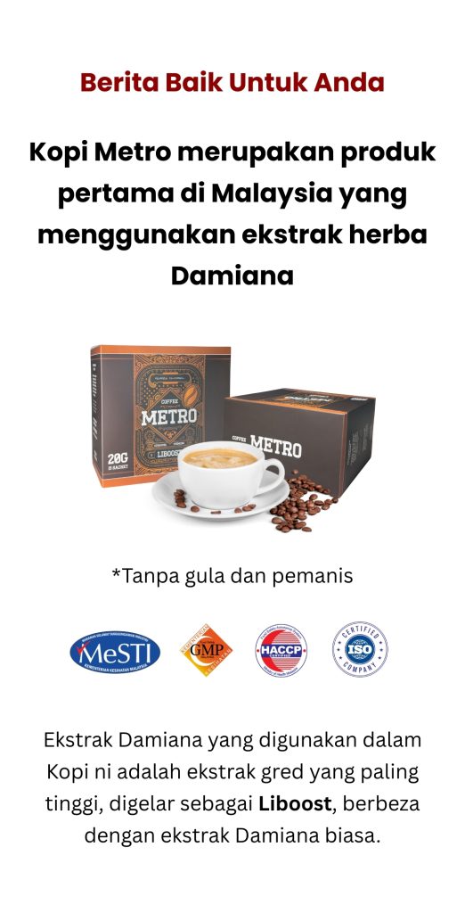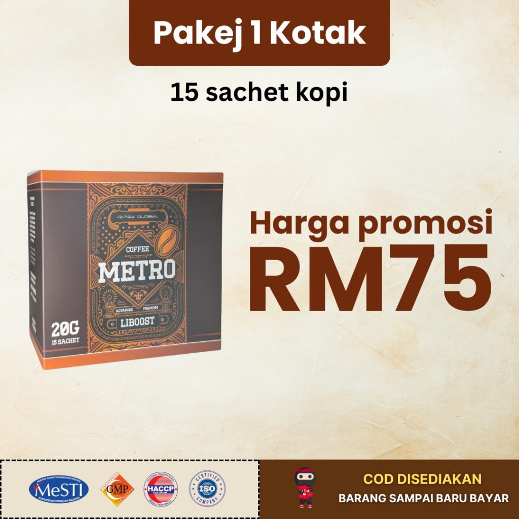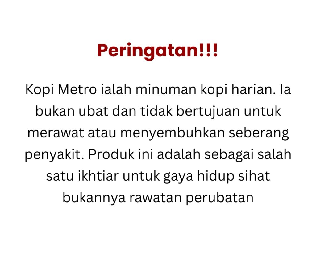 100% selamat. Kopi metro tiada bahan terlarang dan telah diuji selamat untuk kegunaan harian.